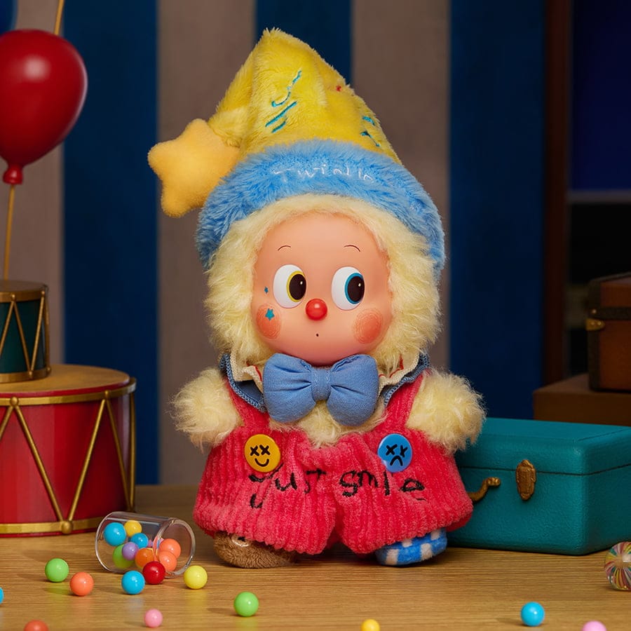 The mischievous Labubu steals the spotlight as the Juggling Clown, dressed in a classic jester hat and a playful, colorful outfit, ready to cause some delightful chaos.